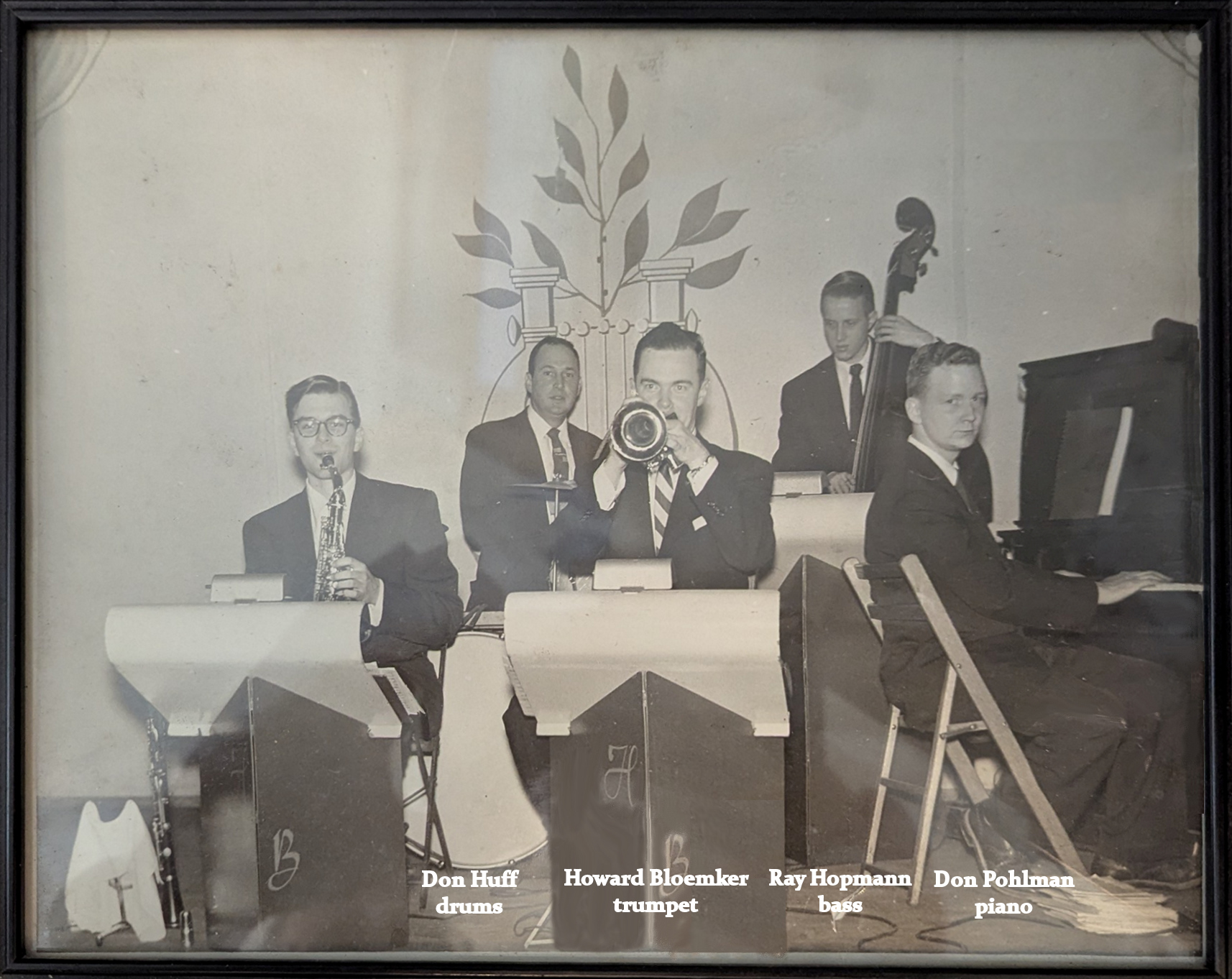 pictured: Sax, unknown, - Don Huff, drums - Howard Bloemker, trumpet - Ray Hopman, bass - Don Pohlman, piano