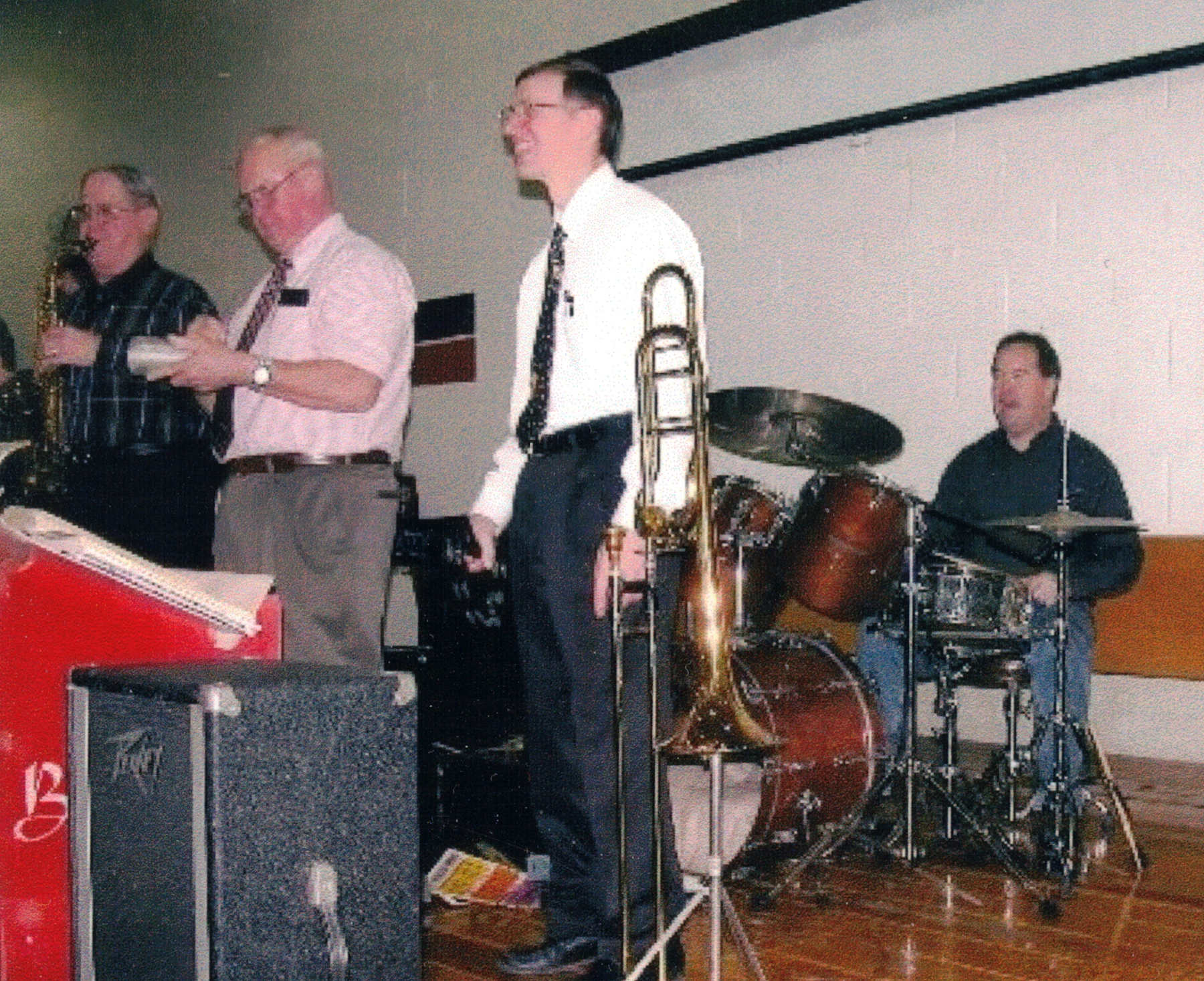 Other musicians who have been regular members sharing their musical talents were, Al Schmidt-trumpet, Pat Emmett-drums, Jack Wagner-sax/Cl, Bill Tipkemper-trumpet, Tom Miller-sax/Cl.